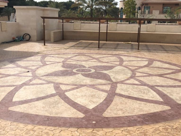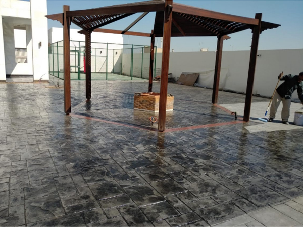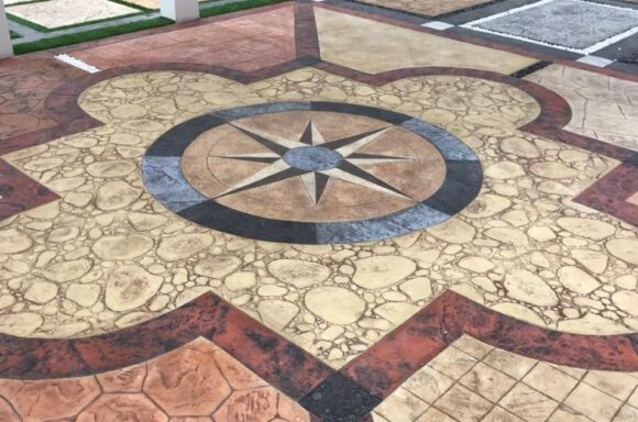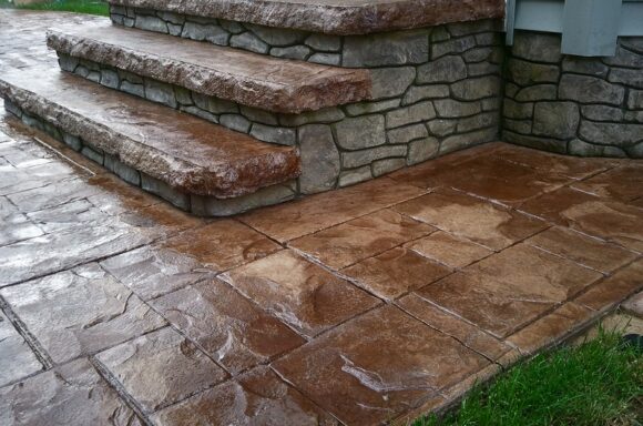 Stamped concrete, commonly referred to as patterned concrete or imprinted concrete